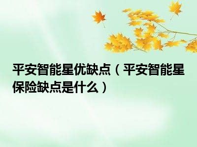 目前应该是有很多小伙伴对于平安智能星保险缺点是什么方面的信息比较感兴趣,现在小编就收集了一些与平安智能星保险缺点是什么相关的信息来分享给大家,感兴趣的小伙伴可以接着往下看,希望会帮助到你哦。