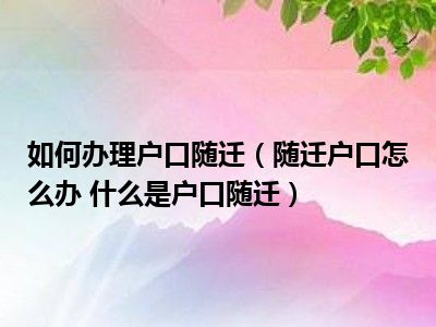 导读 目前大家应该是对随迁户口怎么办 什么是户口随迁比较感兴趣的,所以今天好房网小编CC就来为大家整理了一些关于随迁户口怎么办 什么是户口