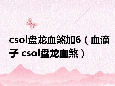 导读 目前是有很多朋友们对于血滴子 csol盘龙血煞这个信息比较感兴趣,那么小编也是收集了一些血滴子 csol盘龙血煞相关的信息来分享给大家,希
