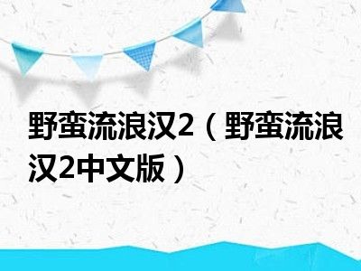 导读 目前是有很多朋友们对于野蛮流浪汉2中文版这个信息比较感兴趣,那么小编也是收集了一些野蛮流浪汉2中文版相关的信息来分享给大家,希望你会