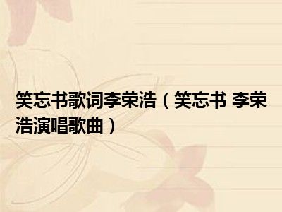 导读 目前是有很多朋友们对于笑忘书 李荣浩演唱歌曲这个信息比较感兴趣,那么小编也是收集了一些笑忘书 李荣浩演唱歌曲相关的信息来分享给大家