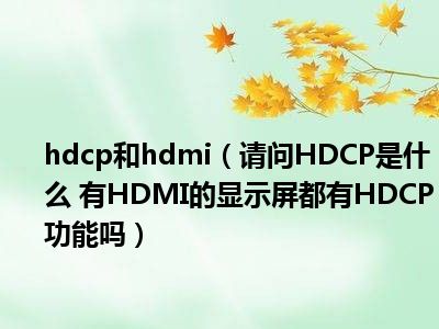 相信目前很多小伙伴对于请问HDCP是什么 有HDMI的显示屏都有HDCP功能吗都比较感兴趣,那么小编今天在网上也是收集了一些与请问HDCP是什么 有HDMI的显示屏都有HDCP功能吗相关的信息来分享给大家,希望能够帮助到大家哦。