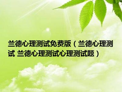 导读 目前是有很多朋友们对于兰德心理测试 兰德心理测试:心理测试题这个信息比较感兴趣,那么小编也是收集了一些兰德心理测试 兰德心理测试: