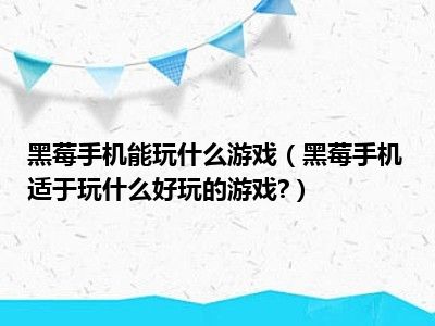 相信目前很多小伙伴对于黑莓手机适于玩什么好玩的游戏?都比较感兴趣,那么小编今天在网上也是收集了一些与黑莓手机适于玩什么好玩的游戏?相关的信息来分享给大家,希望能够帮助到大家哦。