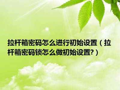 相信目前很多小伙伴对于拉杆箱密码锁怎么做初始设置?都比较感兴趣,那么小编今天在网上也是收集了一些与拉杆箱密码锁怎么做初始设置?相关的信息来分享给大家,希望能够帮助到大家哦。