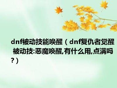 相信目前很多小伙伴对于dnf复仇者觉醒 被动技:恶魔唤醒,有什么用,点满吗?都比较感兴趣,那么小编今天在网上也是收集了一些与dnf复仇者觉醒 被动技:恶魔唤醒,有什么用,点满吗?相关的信息来分享给大家,希望能够帮助到大家哦。