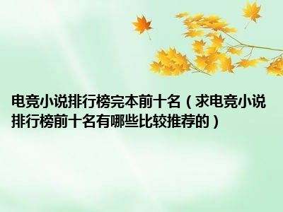 相信目前很多小伙伴对于求电竞小说排行榜前十名,有哪些比较推荐的?都比较感兴趣,那么小编今天在网上也是收集了一些与求电竞小说排行榜前十名,有哪些比较推荐的?相关的信息来分享给大家,希望能够帮助到大家哦。