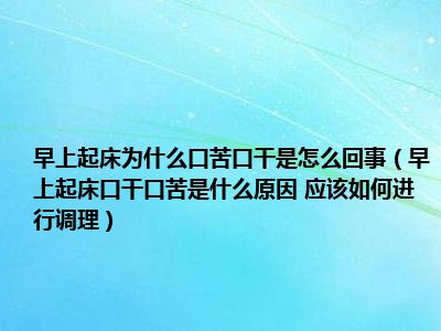目前大家应该是对早上起床口干口苦是什么原因 应该如何进行调理比较感兴趣的,所以今天小编CC就来为大家整理了一些关于早上起床口干口苦是什么原因 应该如何进行调理方面的相关知识来分享给大家,希望大家会喜欢哦。