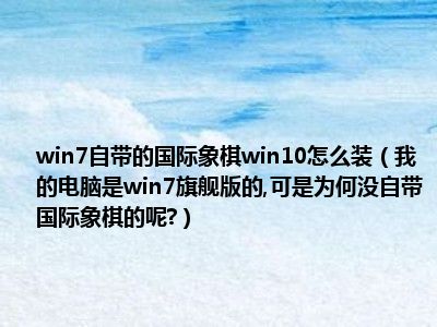 相信目前很多小伙伴对于我的电脑是win7旗舰版的,可是为何没自带国际象棋的呢?都比较感兴趣,那么小编今天在网上也是收集了一些与我的电脑是win7旗舰版的,可是为何没自带国际象棋的呢?相关的信息来分享给大家,希望能够帮助到大家哦。