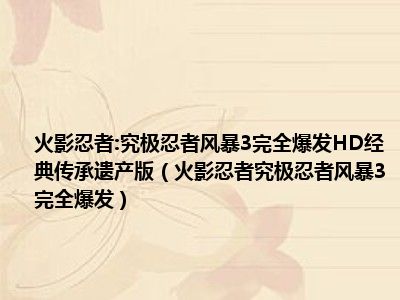导读 目前是有很多朋友们对于火影忍者:究极忍者风暴3完全爆发这个信息比较感兴趣,那么小编也是收集了一些火影忍者:究极忍者风暴3完全爆发相关