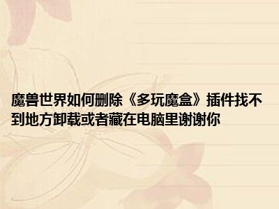 相信目前很多小伙伴对于魔兽世界,请问怎么样删除《多玩魔盒》插件,我在电脑中都找不到卸载或它隐藏的地方。谢谢!都比较感兴趣,那么小编今天在网上也是收集了一些与魔兽世界,请问怎么样删除《多玩魔盒》插件,我在电脑中都找不到卸载或它隐藏的地方。谢谢!相关的信息来分享给大家,希望能够帮助到大家哦。
