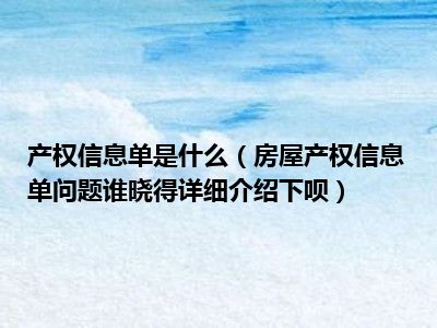 导读 目前大家应该是对房屋产权信息单问题谁晓得详细介绍下呗比较感兴趣的,所以今天好房网小编CC就来为大家整理了一些关于房屋产权信息单问题谁