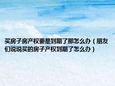 导读 目前大家应该是对朋友们说说买的房子产权到期了怎么办比较感兴趣的,所以今天好房网小编CC就来为大家整理了一些关于朋友们说说买的房子产权