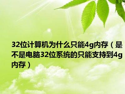相信目前很多小伙伴对于是不是电脑32位系统的只能支持到4g内存。都比较感兴趣,那么小编今天在网上也是收集了一些与是不是电脑32位系统的只能支持到4g内存。相关的信息来分享给大家,希望能够帮助到大家哦。
