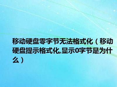 相信目前很多小伙伴对于移动硬盘提示格式化,显示0字节是为什么都比较感兴趣,那么小编今天在网上也是收集了一些与移动硬盘提示格式化,显示0字节是为什么相关的信息来分享给大家,希望能够帮助到大家哦。