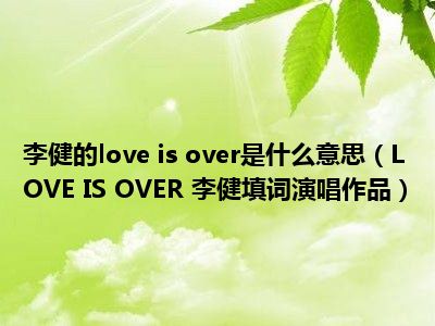 导读 目前是有很多朋友们对于LOVE IS OVER 李健填词演唱作品这个信息比较感兴趣,那么小编也是收集了一些LOVE IS OVER 李健填词演唱作品相