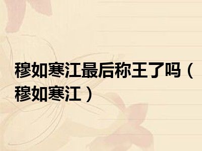 导读 相信目前很多小伙伴对于穆如寒江都比较感兴趣,那么小搜今天在网上也是收集了一些与穆如寒江相关的信息来分享给大家,希望能够帮助到大家哦