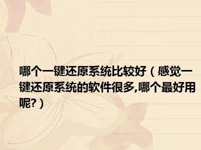 相信目前很多小伙伴对于感觉一键还原系统的软件很多,哪个最好用呢?都比较感兴趣,那么小编今天在网上也是收集了一些与感觉一键还原系统的软件很多,哪个最好用呢?相关的信息来分享给大家,希望能够帮助到大家哦。