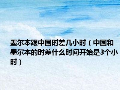 相信目前很多小伙伴对于中国和墨尔本的时差什么时间开始是3个小时都比较感兴趣,那么小编今天在网上也是收集了一些与中国和墨尔本的时差什