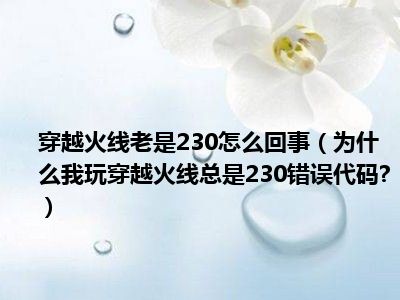 相信目前很多小伙伴对于为什么我玩穿越火线总是230错误代码?都比较感兴趣,那么小编今天在网上也是收集了一些与为什么我玩穿越火线总是230错误代码?相关的信息来分享给大家,希望能够帮助到大家哦。