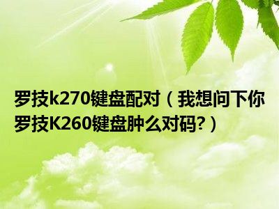 相信目前很多小伙伴对于我想问下你罗技K260键盘肿么对码?都比较感兴趣,那么小编今天在网上也是收集了一些与我想问下你罗技K260键盘肿么对码?相关的信息来分享给大家,希望能够帮助到大家哦。