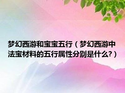 相信目前很多小伙伴对于梦幻西游中法宝材料的五行属性分别是什么?都比较感兴趣,那么小编今天在网上也是收集了一些与梦幻西游中法宝材料的