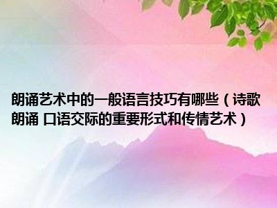 2、朗诵是一种口语交际的重要形式和传情艺术,是朗诵者把文学作品转化为有声语言的再创作,再表达的艺术活动。