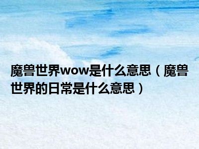相信目前很多小伙伴对于魔兽世界的日常是什么意思?都比较感兴趣,那么小编今天在网上也是收集了一些与魔兽世界的日常是什么意思?相关的信息来分享给大家,希望能够帮助到大家哦。