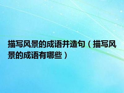 相信目前很多小伙伴对于描写风景的成语有哪些都比较感兴趣,那么小编今天在网上也是收集了一些与描写风景的成语有哪些相关的信息来分享给大家,希望能够帮助到大家哦。