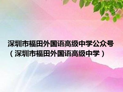 导读 相信目前很多小伙伴对于深圳市福田外国语高级中学都比较感兴趣,那么小搜今天在网上也是收集了一些与深圳市福田外国语高级中学相关的信息来
