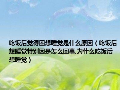 目前大家应该是对吃饭后想睡觉特别困是怎么回事,为什么吃饭后想睡觉比较感兴趣的,所以今天小编CC就来为大家整理了一些关于吃饭后想睡觉特别困是怎么回事,为什么吃饭后想睡觉方面的相关知识来分享给大家,希望大家会喜欢哦。