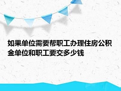 导读 目前大家应该是对单位如需帮职员办理住房公积金,则单位以及职员所应缴纳的费用为多少比较感兴趣的,所以今天好房网小编CC就来为大家整理了