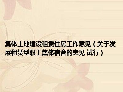 导读 目前是有很多朋友们对于关于发展租赁型职工集体宿舍的意见 试行这个信息比较感兴趣,那么小编也是收集了一些关于发展租赁型职工集体宿舍的