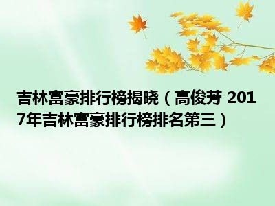 导读 目前是有很多朋友们对于高俊芳 2017年吉林富豪排行榜排名第三这个信息比较感兴趣,那么小编也是收集了一些高俊芳 2017年吉林富豪排行榜排