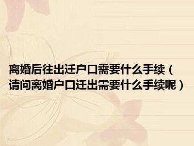 ,迁出户口分两种情况,第一种是从丈夫的户籍上迁出回娘家,这只要拿离婚证明到户籍管理机关办理即可。第二种,是跟丈夫户籍分开,但仍然保留户籍在原地,这需要办分户手续。那么分户手续分理条件为: 公民分户的标准是一家虽同居一处,但经济独立,分别生活,可以 分别立户。 分户的条件是实际住房有两个以上自然间,且单独生活。单元楼房的分户仅限于离婚分户,筒子楼的分户按平房分户办理。自建房等违章建筑不予分户。一家同居一处,因结婚单独居住,不在一起生活的;经法院判决或调解的离婚当事人有房屋居住权,且确实在此居住的;经法院判决或调解的房产纠纷当事人有房屋居住权,且确实在此居住的;已办理了私房析产、赠予以及继承手续的;已在房屋管理部门办理了房契分户手续的;户口冻结地区的分户工作,按当地的规定执行。 分户程序:(1) 公房分户。当事人持分户的书面申请、结婚证、房屋租赁契约以及房屋承租人同意分户的文字材料等证件证明,到现户口登记地派出所申请,经外勤民警调查核实派出所所长批准后,给于办理分户手续。(2)私房分户。当事人持分户的书面申请、法院判决书或公正书,以及私房房契等证件证明材料(农村地区分户需要出具村委会同意分户的证明)到现户口登记地派出所申请,经外勤民警调查核实派出所所长批准后,给于办理分户手续。