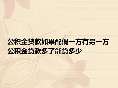 导读 目前大家应该是对公积金贷款,夫妻一方有另一方没有,如果公积金贷款**多可以贷多少比较感兴趣的,所以今天好房网小编CC就来为大家整理了一