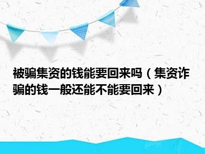 目前大家应该是对集资诈骗的钱一般还能不能要回来比较感兴趣的,所以今天CC就来为大家整理了一些关于集资诈骗的钱一般还能不能要回来方面的相关知识来分享给大家,希望大家会喜欢哦。