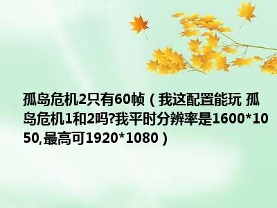 相信目前很多小伙伴对于我这配置能玩 孤岛危机1和2吗?我平时分辨率是1600*1050,最高可1920*1080都比较感兴趣,那么小编今天在网上也是收集了一些与我这配置能玩 孤岛危机1和2吗?我平时分辨率是1600*1050,最高可1920*1080相关的信息来分享给大家,希望能够帮助到大家哦。