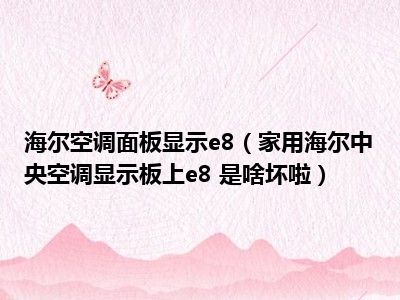 相信目前很多小伙伴对于家用海尔中央空调显示板上e8 是啥坏啦都比较感兴趣,那么小编今天在网上也是收集了一些与家用海尔中央空调显示板上e8 是啥坏啦相关的信息来分享给大家,希望能够帮助到大家哦。