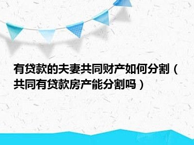 目前大家应该是对共同有贷款房产能分割吗比较感兴趣的,所以今天CC就来为大家整理了一些关于共同有贷款房产能分割吗方面的相关知识来分享给大家,希望大家会喜欢哦。