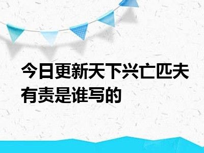 目前大家应该是对天下兴亡匹夫有责是谁写的比较感兴趣的,所以今天好房网小编CC就来为大家整理了一些关于天下兴亡匹夫有责是谁写的方面的相关知识来分享给大家,希望大家会喜欢哦。