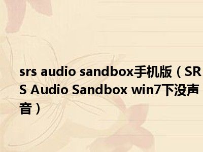 相信目前很多小伙伴对于SRS Audio Sandbox win7下没声音都比较感兴趣,那么小编今天在网上也是收集了一些与SRS Audio Sandbox win7下没声音相关的信息来分享给大家,希望能够帮助到大家哦。