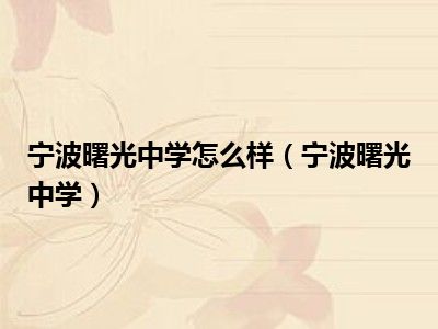 导读相信目前很多小伙伴对于宁波曙光中学都比较感兴趣,那么小搜今天在网上也是收集了一些与宁波曙光中学相关的信息来分享给大家,希望能够帮助...
