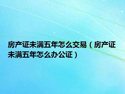 导读 目前大家应该是对房产证未满五年,怎么办公证比较感兴趣的,所以今天好房网小编CC就来为大家整理了一些关于房产证未满五年,怎么办公证方面