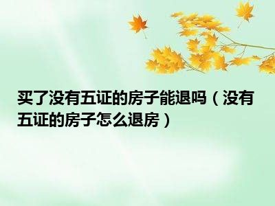 导读 目前大家应该是对没有五证的房子怎么退房比较感兴趣的,所以今天好房网小编CC就来为大家整理了一些关于没有五证的房子怎么退房方面的相关知