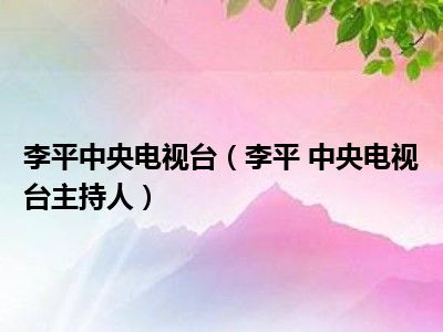 导读 目前是有很多朋友们对于李平 中央电视台主持人这个信息比较感兴趣,那么小编也是收集了一些李平 中央电视台主持人相关的信息来分享给大家