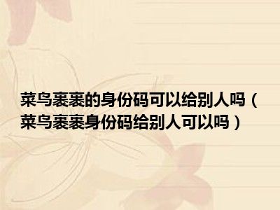 导读 1、菜鸟裹裹身份码给别人可以吗2、菜鸟把自己的ID码包给别人没问题。对方打开菜鸟包裹app,就可以看到你的快递信息,然后对方就可以用自己