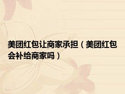导读 1、美团红包会补给商家吗2、美团的红包一般不会供应给商家,因为美团外卖上商家自己做的优惠红包都是商家自己支付的;美团外卖的平台推出的