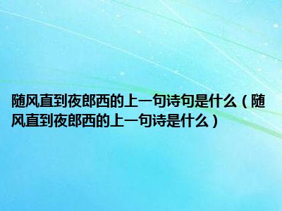 相信目前很多小伙伴对于随风直到夜郎西的上一句诗是什么都比较感兴趣,那么小编今天在网上也是收集了一些与随风直到夜郎西的上一句诗是什么相关的信息来分享给大家,希望能够帮助到大家哦。