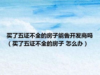 导读 目前大家应该是对买了五证不全的房子 怎么办比较感兴趣的,所以今天好房网小编CC就来为大家整理了一些关于买了五证不全的房子 怎么办方面